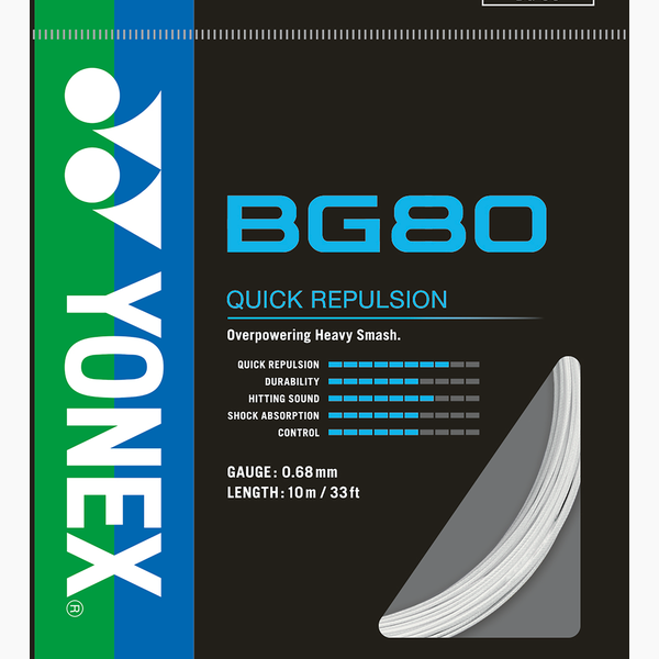 Die YONEX BG 80 ist eine der beliebtesten Saiten unter Profis und ambitionierten Spielern. Mit ihrer rauen Oberfläche und einem Durchmesser von 0,68 mm bietet sie exzellente Rückmeldung und ermöglicht aggressive Schläge mit hoher Präzision.
