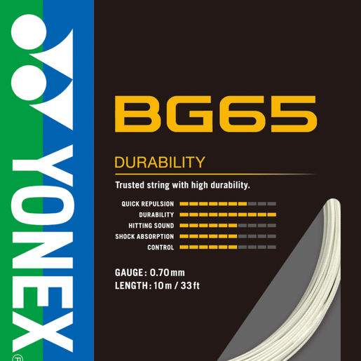 Die Yonex BG-65 ist eine sehr beliebte Badminton-Saite von Yonex. Du bekommst eine etwas dickere Saite, die dadurch etwas länger hält. Dies macht die Spieleigenschaften natürlich etwas weniger gut als die etwas dünneren Saiten, aber es ist perfekt für den Jugendspieler oder den anspruchsvollen Übungsspieler, der eine Badmintonsaite von wirklich wunderbarer Qualität und guter Haltbarkeit möchte.