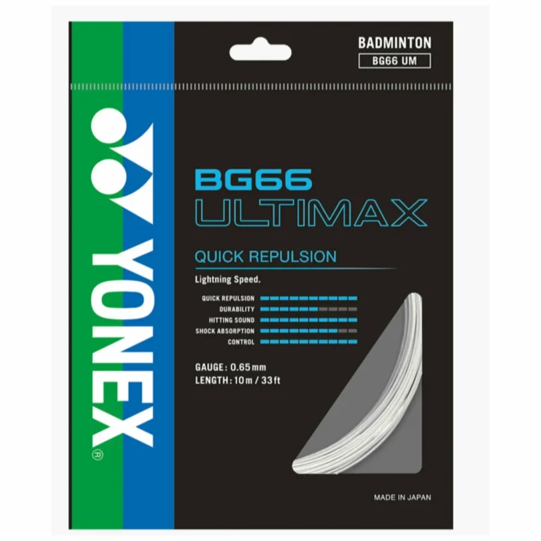 Yonex BG 66 Ultimax ist eine Badminton-Saite für alle, die das Spiel mit einem großartigen Sound und viel Kraft und Kontrolle mit einer nur 0,65 mm dicken Saite kontrollieren möchten. Mit der dünnen Dicke erhältst du einen wirklich schönen Ballkontakt, etwas weniger Haltbarkeit, aber dafür jede Menge Power. Probiere es aus!